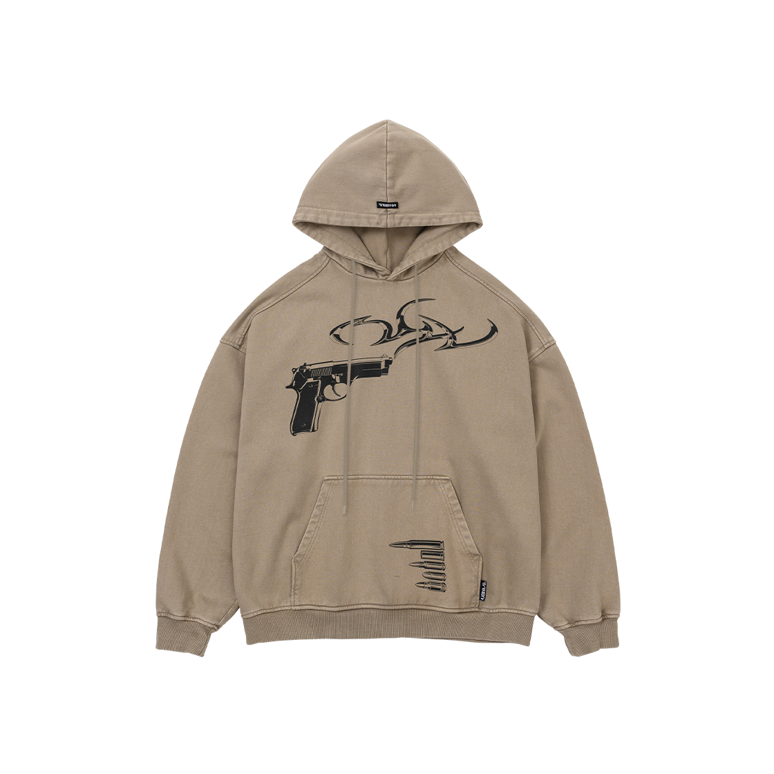 아조바이아조 PBA 아치 로고 워시드 레이어드 후디 더스트 베이지