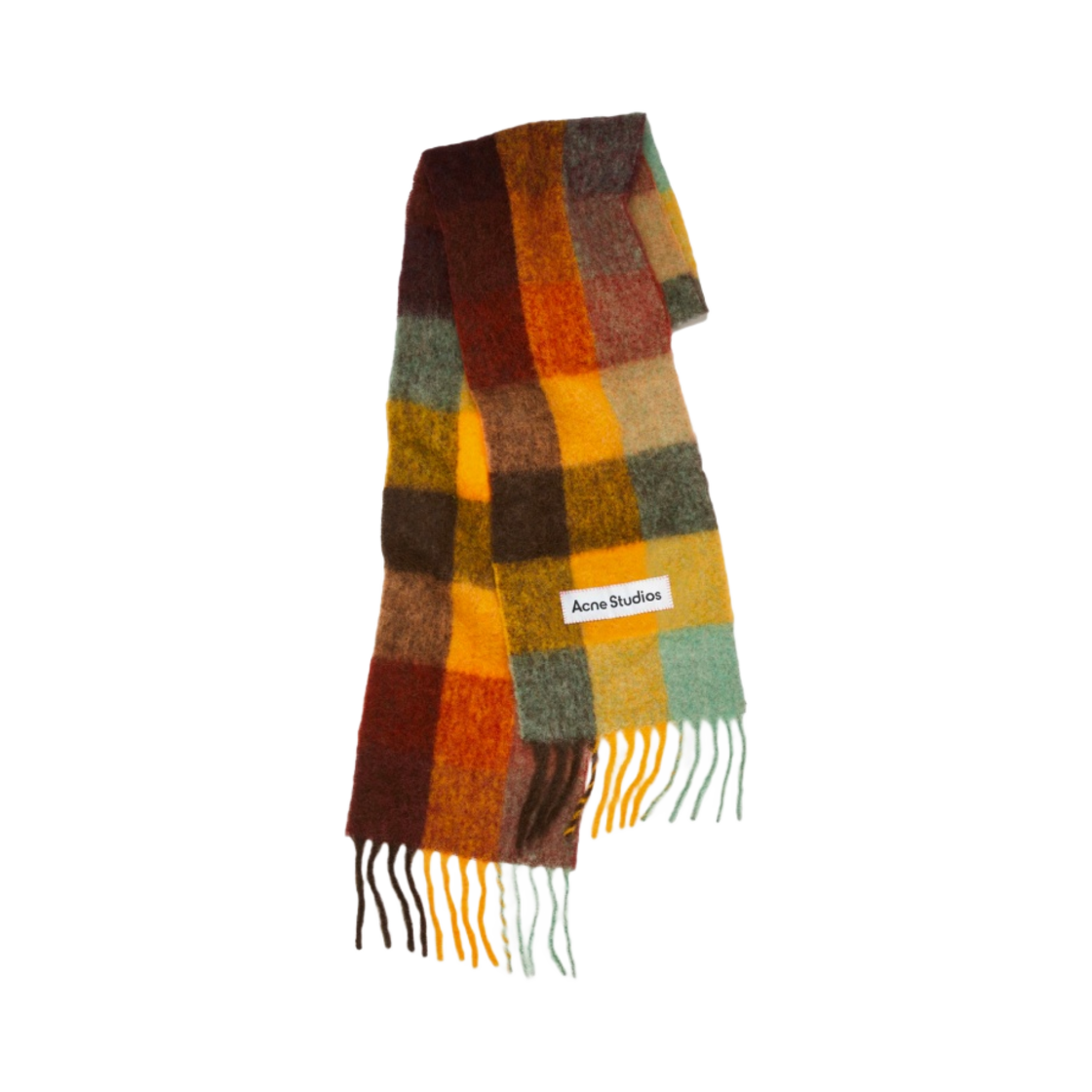 아크네 스튜디오 모헤어 체크 머플러 체스트넛 브라운 옐로우 그린