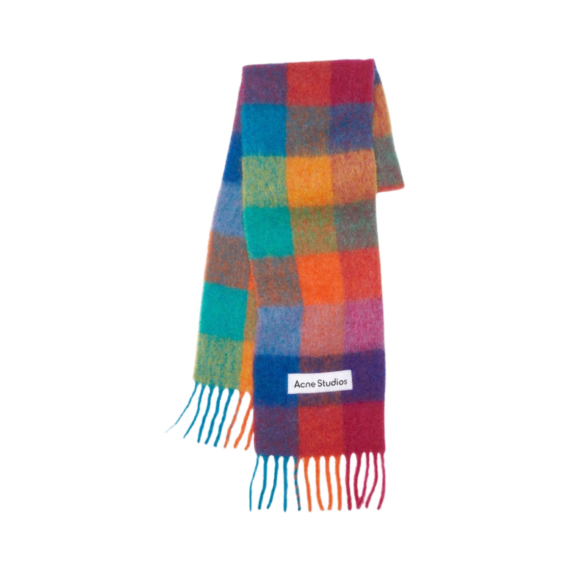 아크네 스튜디오 모헤어 체크 머플러 바이올렛 옐로우 블루