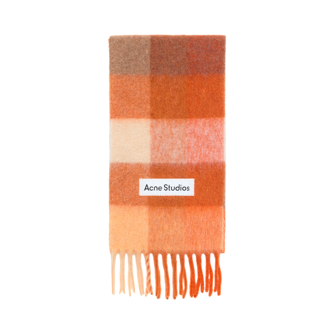 아크네 스튜디오 모헤어 체크 머플러 브라이트 오렌지 화이트 애프리콧