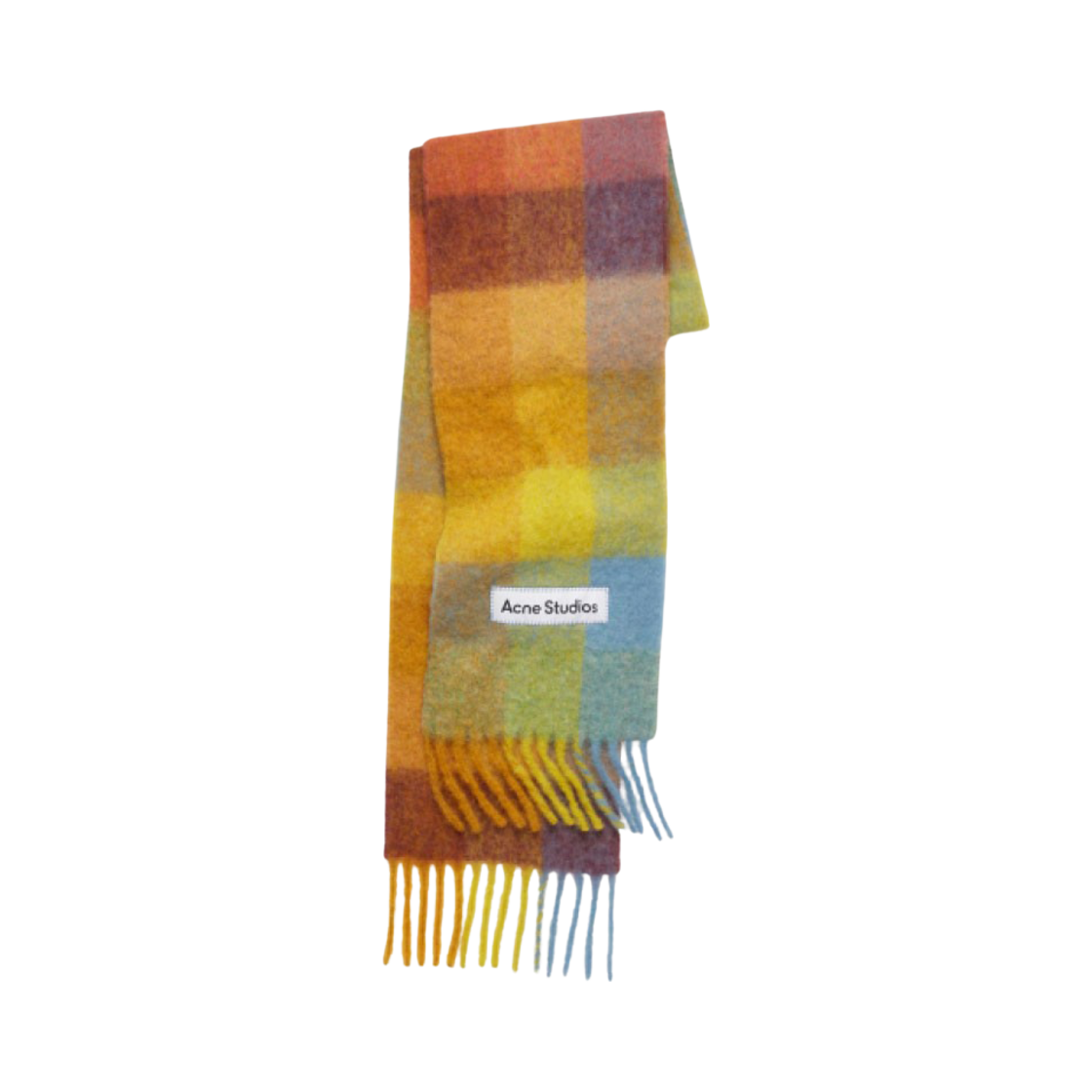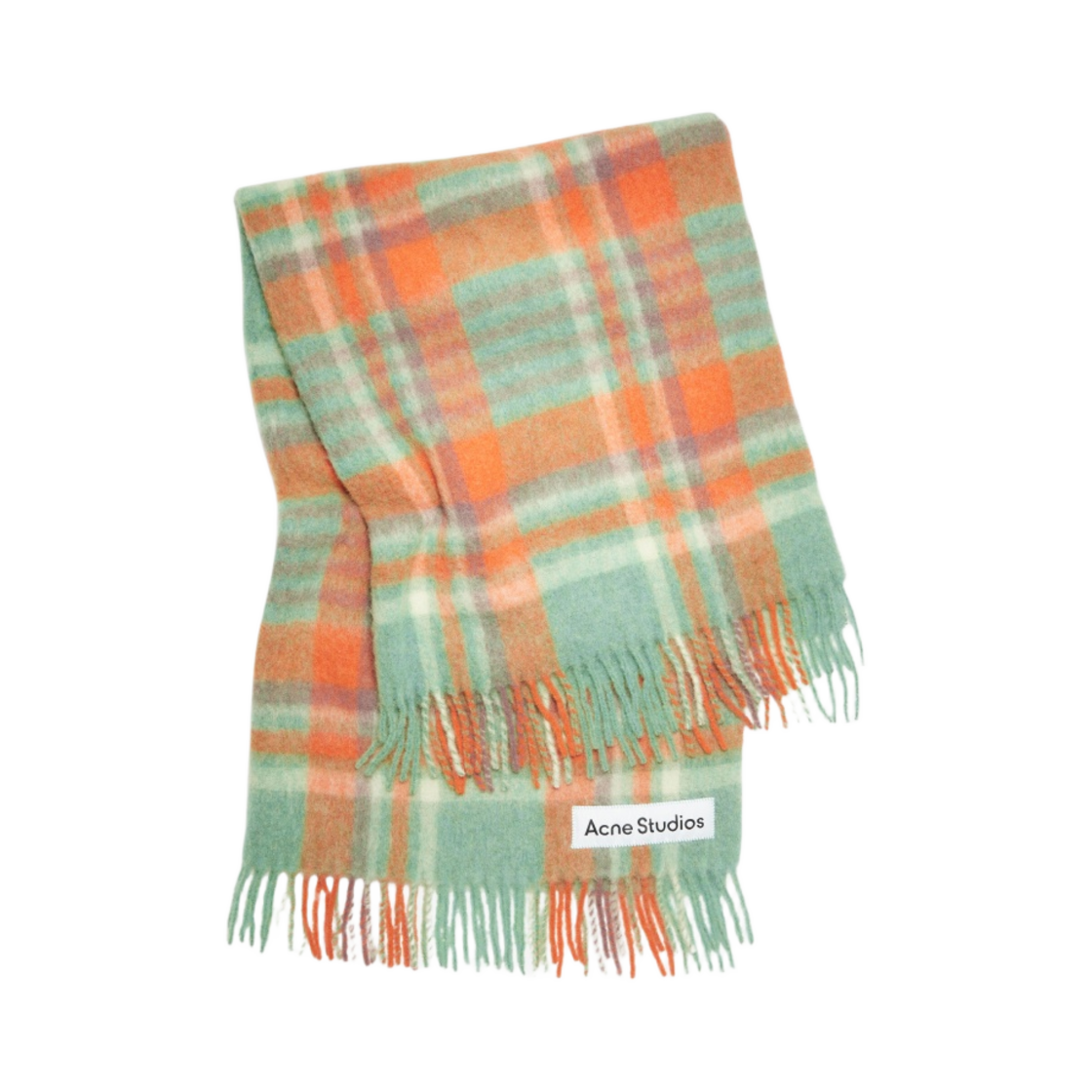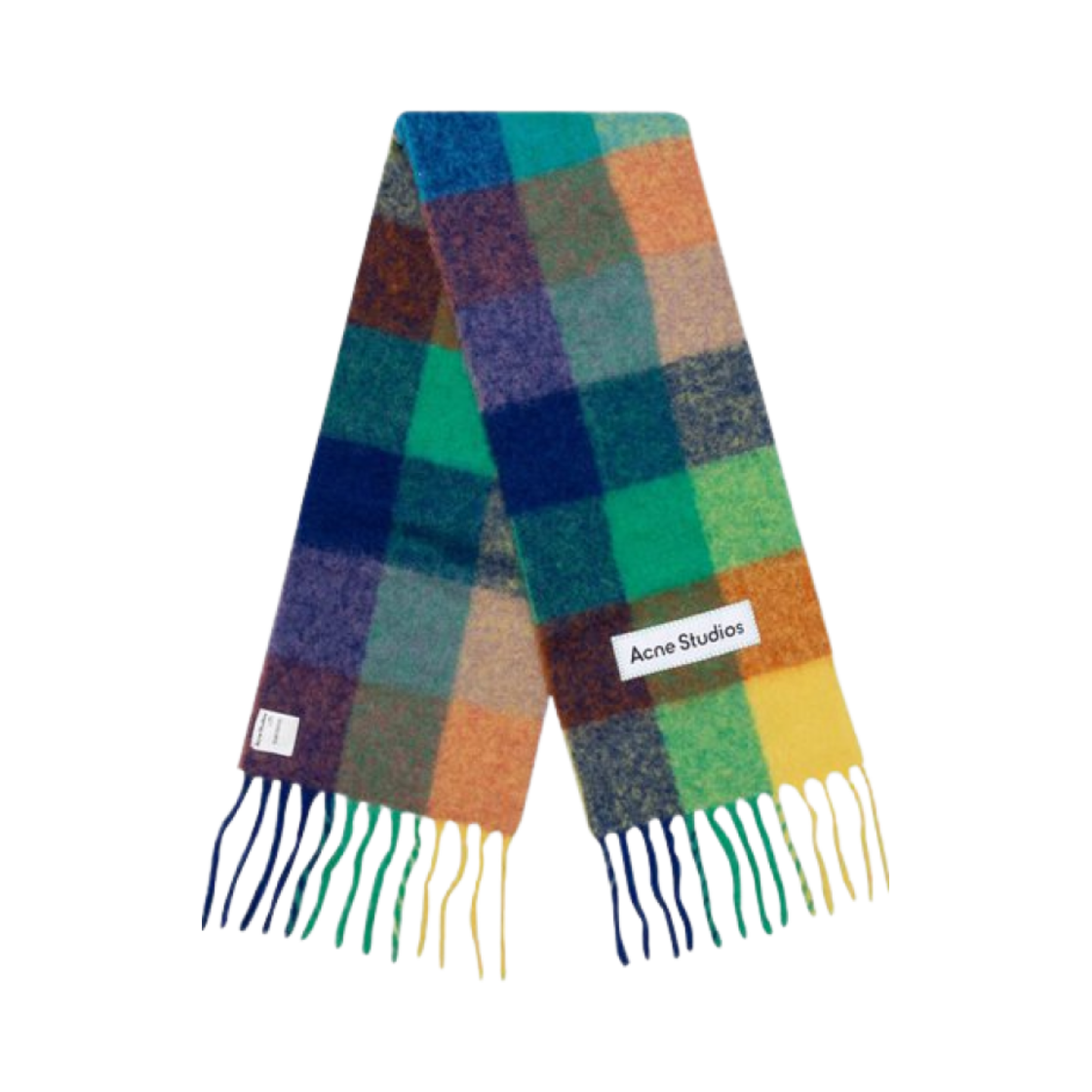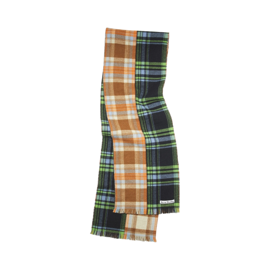 아크네 스튜디오 믹스 체크 울 머플러 블루 그린 오렌지