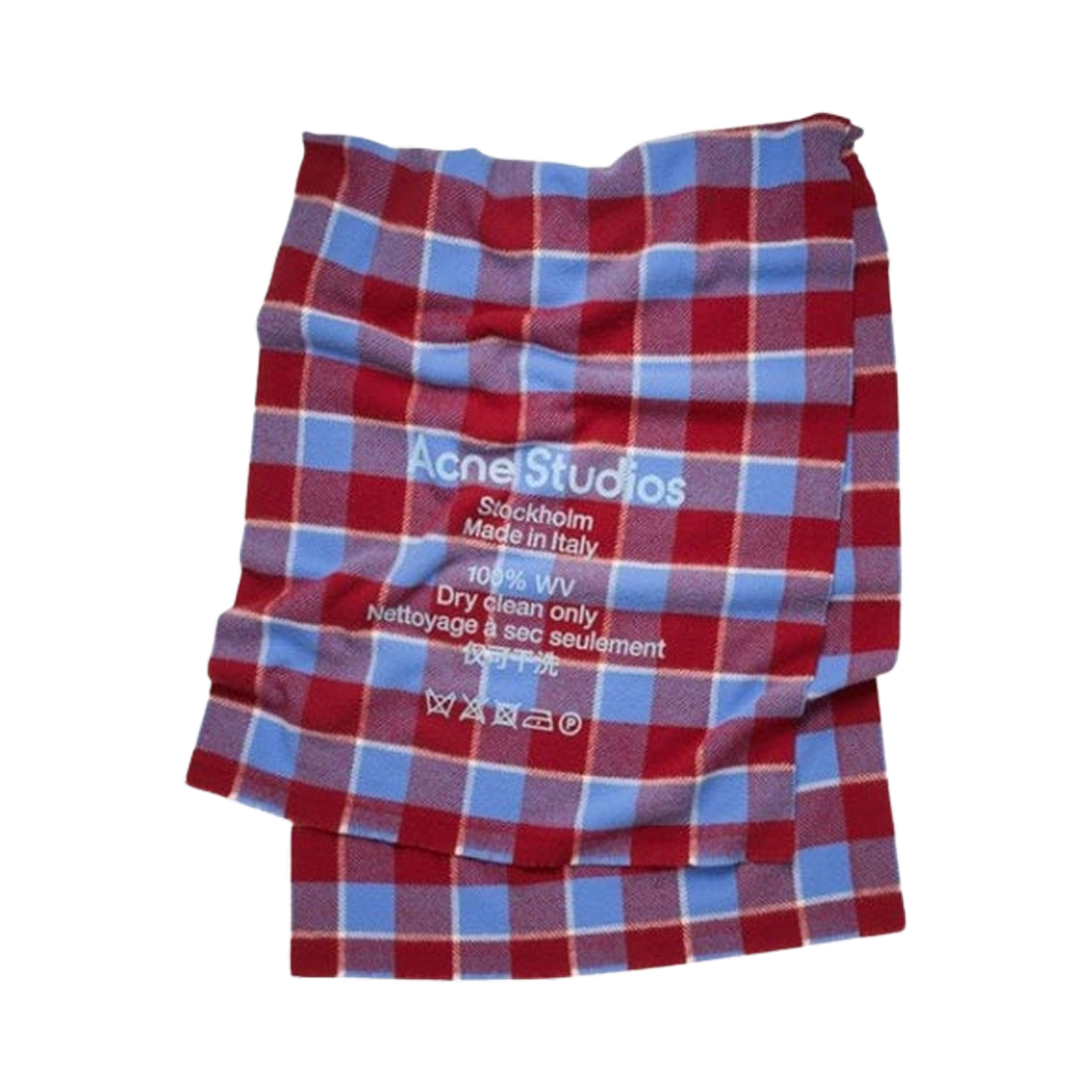 아크네 스튜디오 체크 로고 울 머플러 체리 레드 스카이 블루