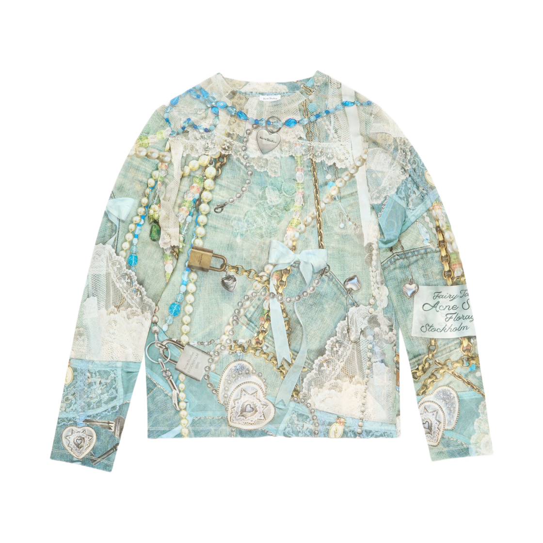 아크네 스튜디오 롱 슬리브 프린트 티셔츠 블루 멀티