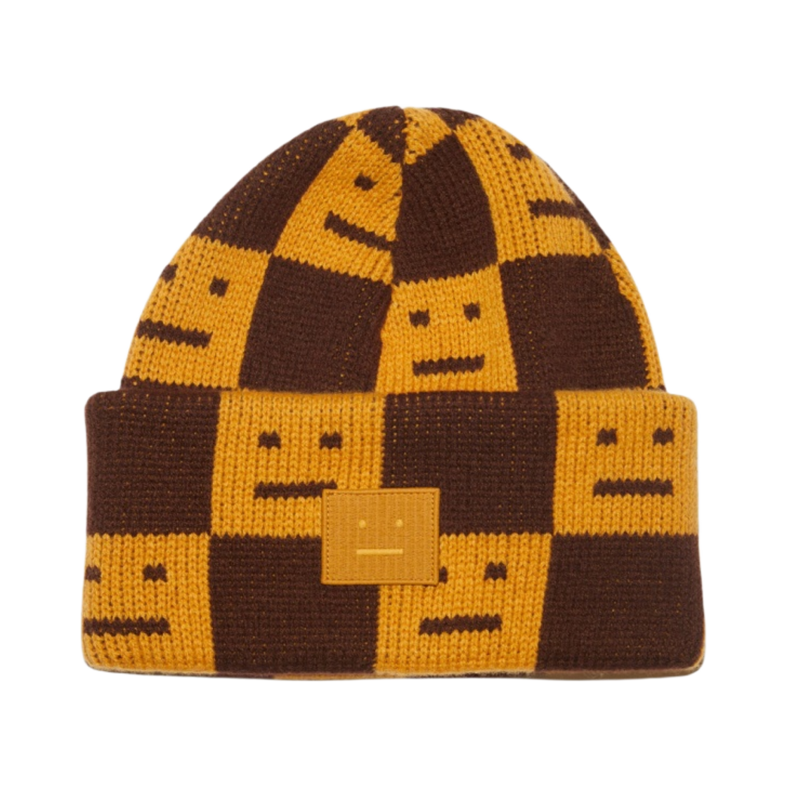 아크네 스튜디오 자카드 니트 비니 햇 오커 오렌지 커피 브라운