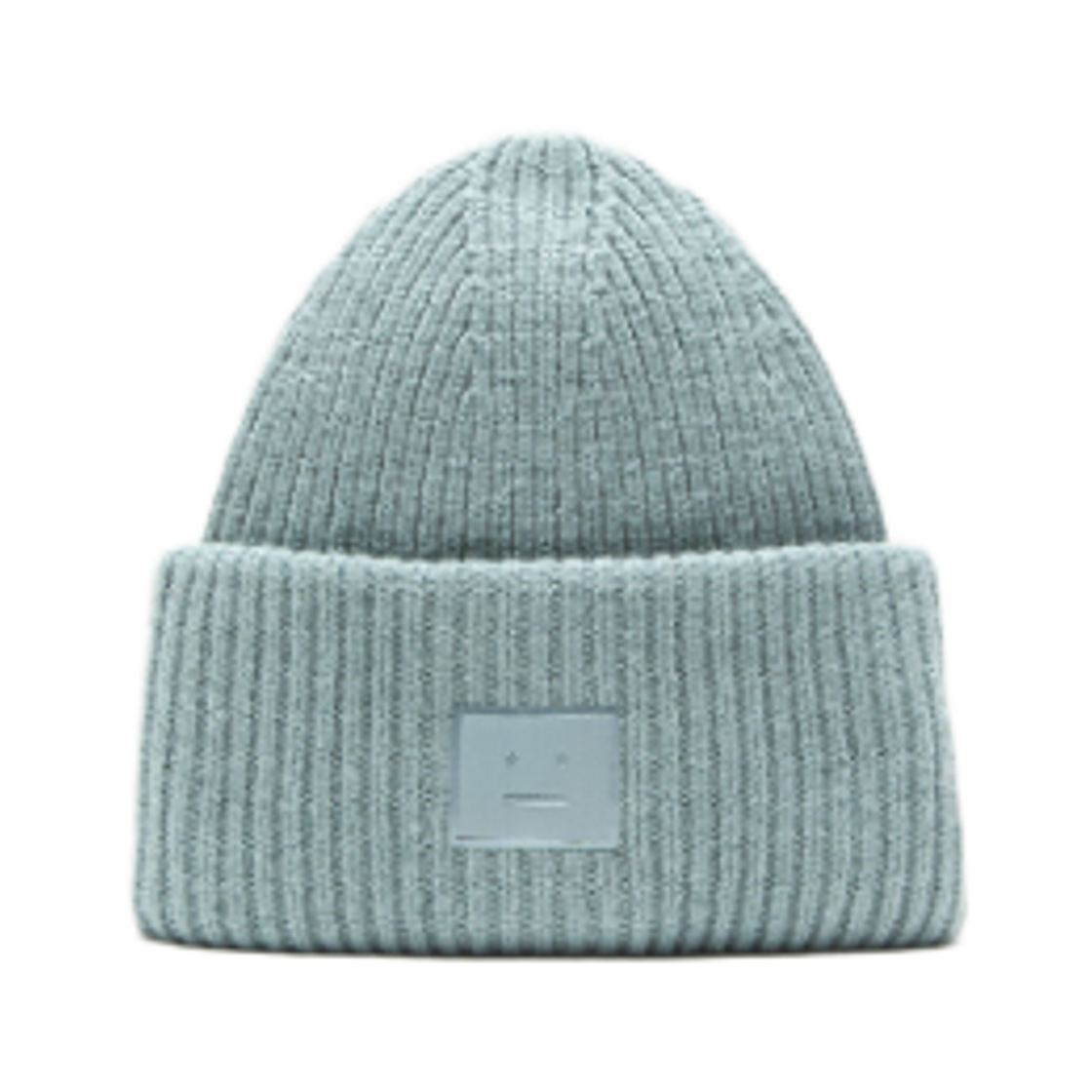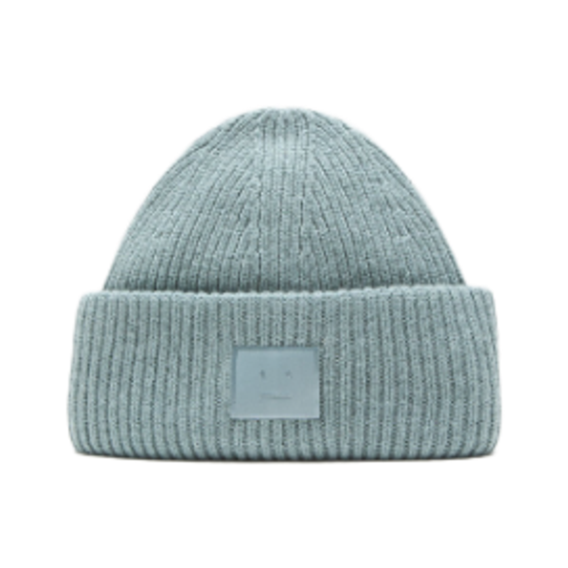 아크네 스튜디오 라지 페이스 로고 비니 페일 그린 멜란지