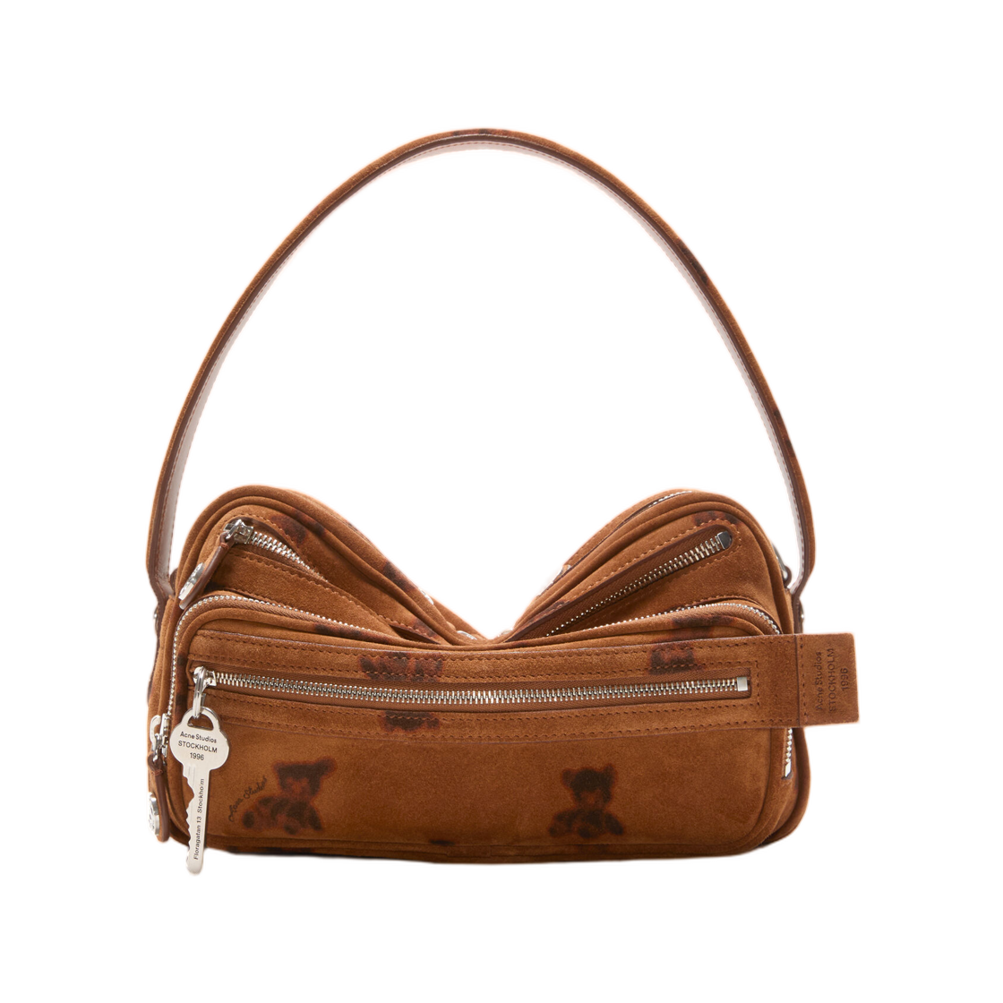 아크네 스튜디오 카메로 파티 스웨이드 숄더백 테디 프린트 러스트 브라운