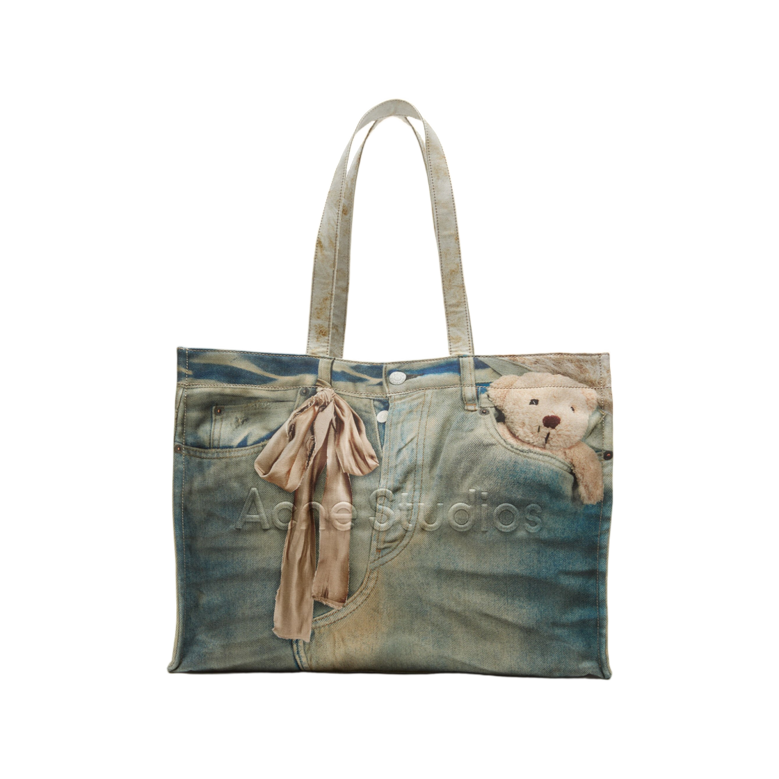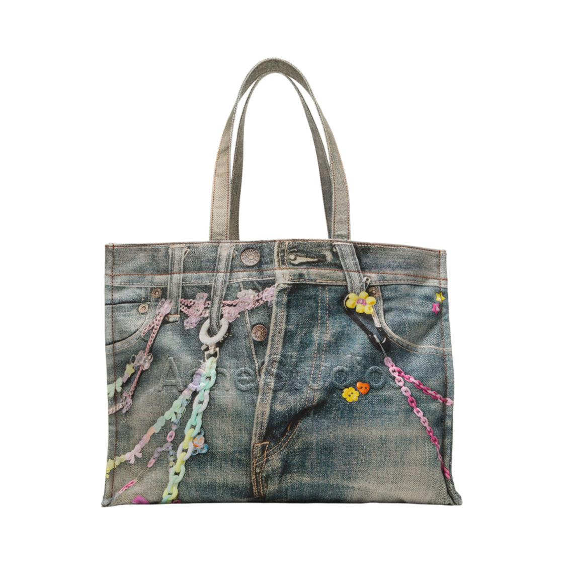 아크네 스튜디오 로고 숄더 토트백 데님 블루