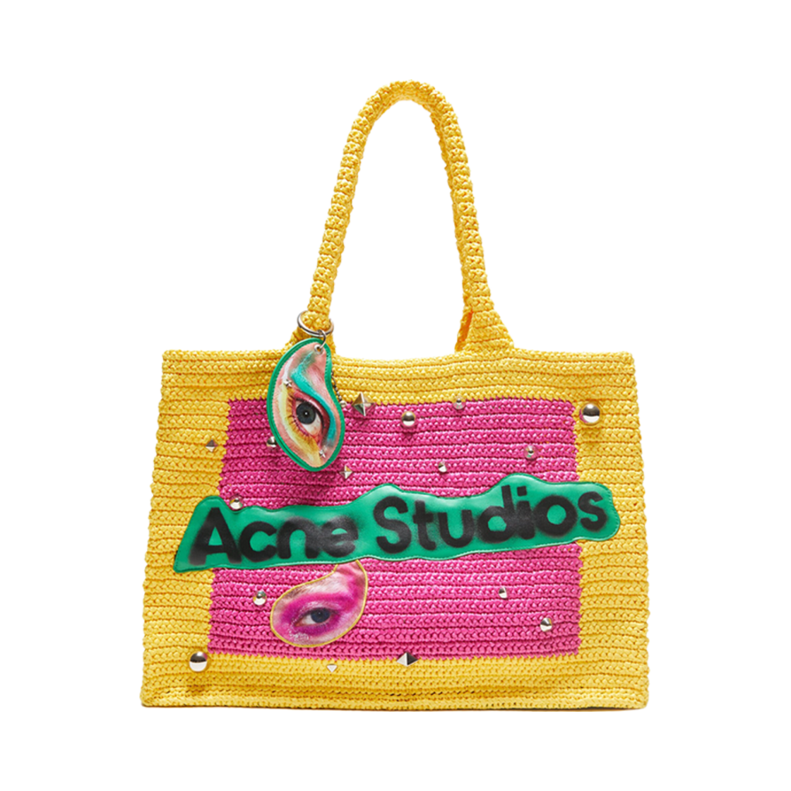 아크네 스튜디오 로고 스터드 토트백 핑크 옐로우