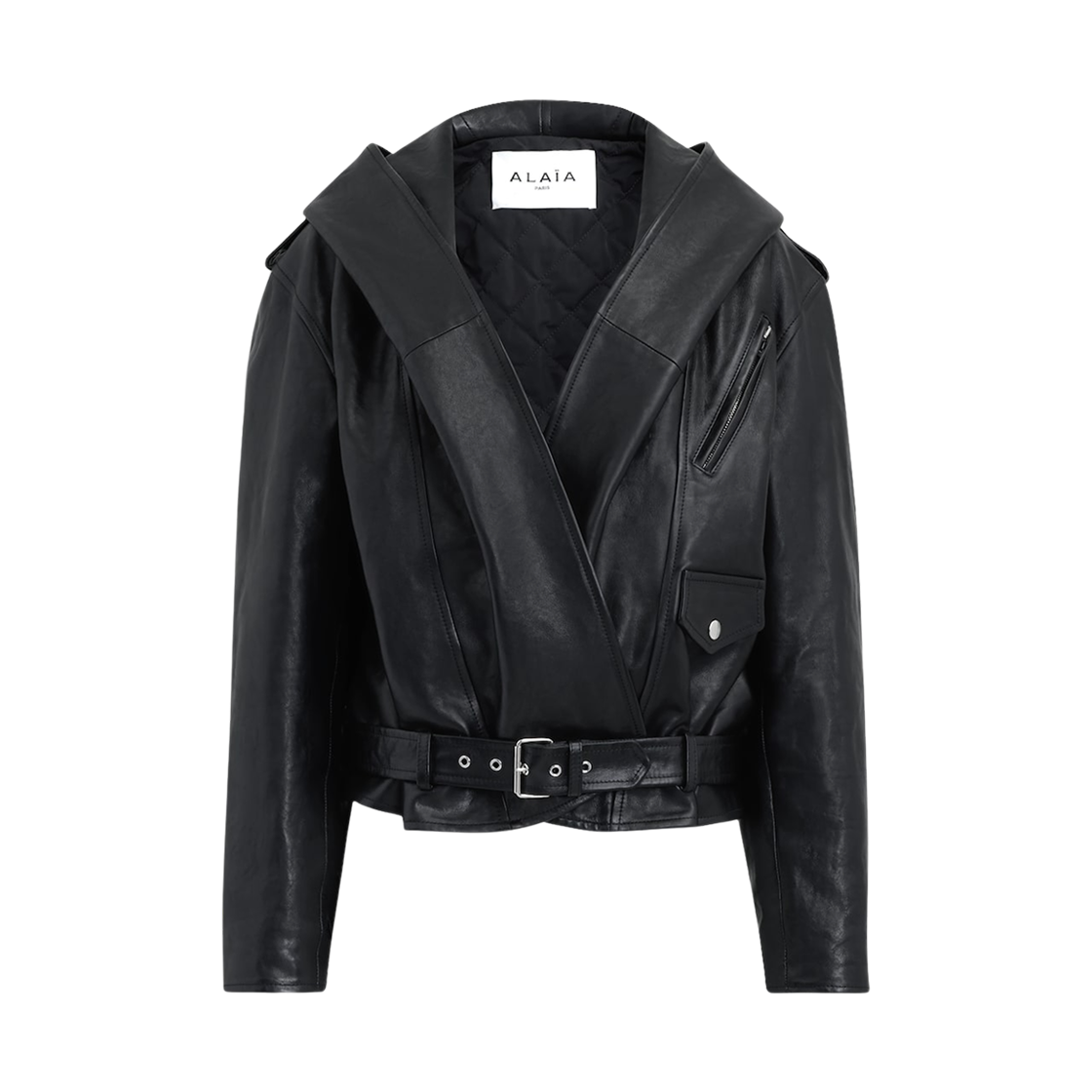 (W) 알라이아 파티나 나파 레더 후드 바이커 자켓 블랙