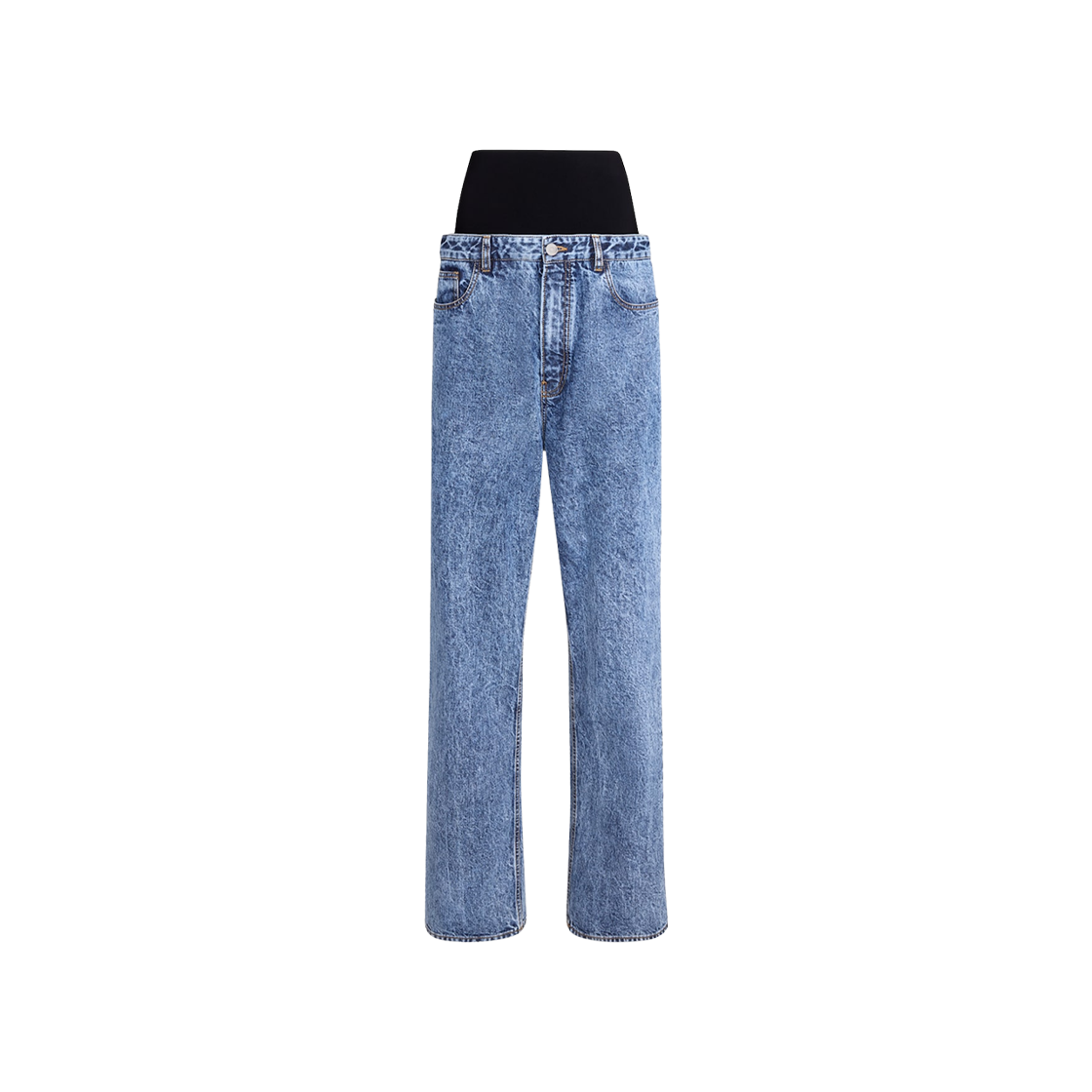 (W) 알라이아 로우 웨이스트 라운드 진 라이트 블루