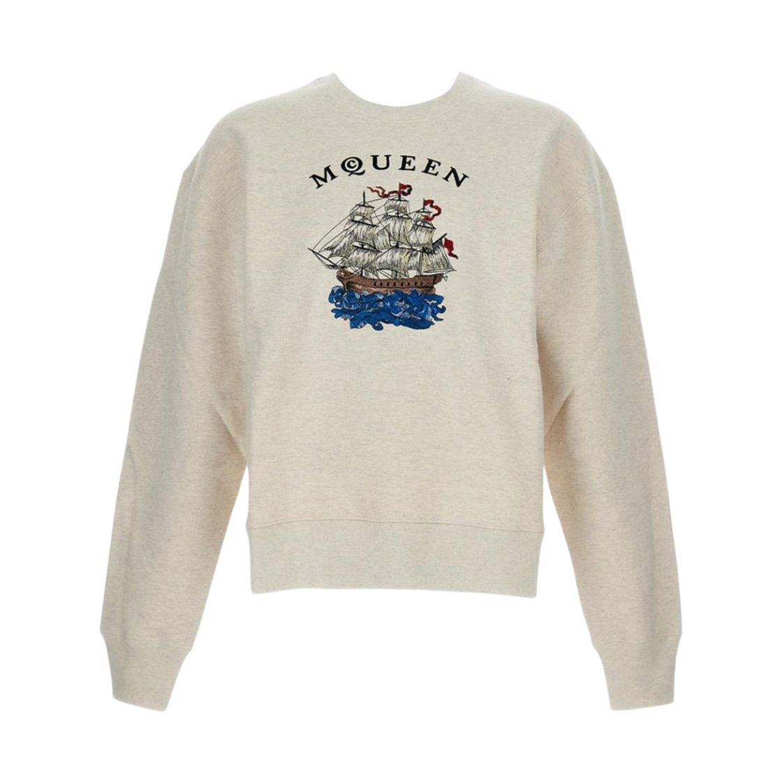 알렉산더 맥퀸 로고 자수 스웨트셔츠 베이지