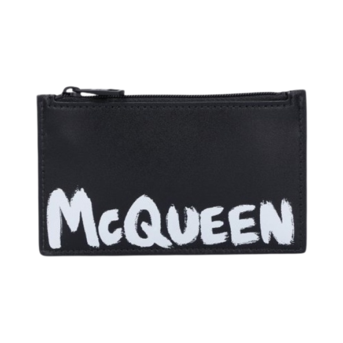 알렉산더 맥퀸 그래피티 로고 프린티드 집 코인 카드 홀더 블랙