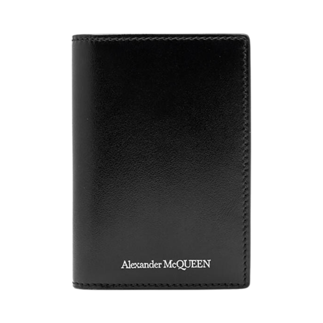 알렉산더 맥퀸 로고 더블 카드 홀더 레더 블랙