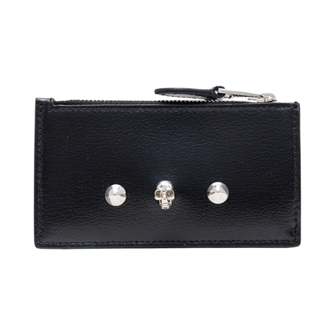 알렉산더 맥퀸 스컬 스터드 지퍼 카드 홀더 블랙