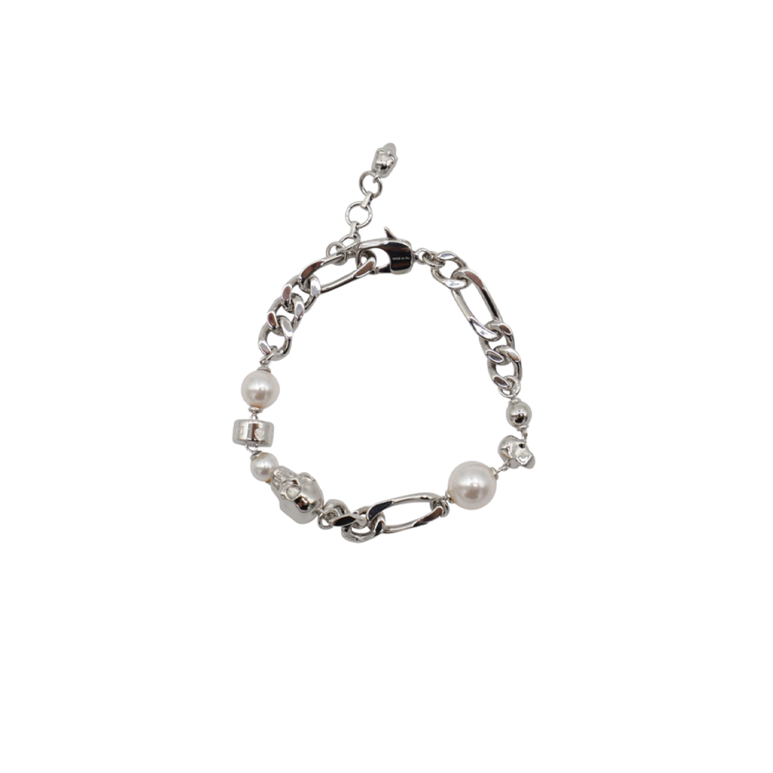 알렉산더 맥퀸 스컬 멀티비드 브레이슬릿 실버