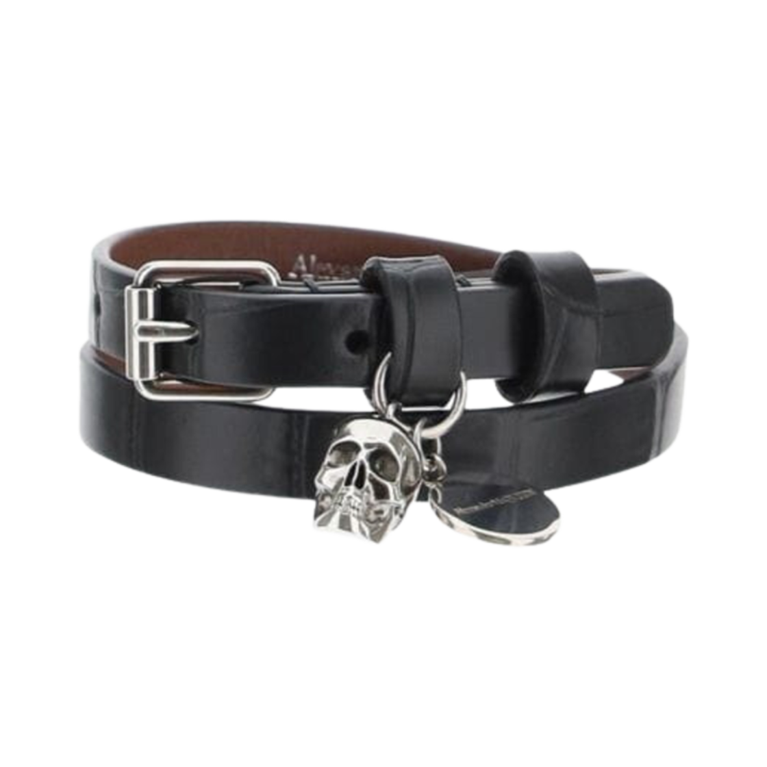 알렉산더 맥퀸 스컬 레더 브레이슬릿 블랙