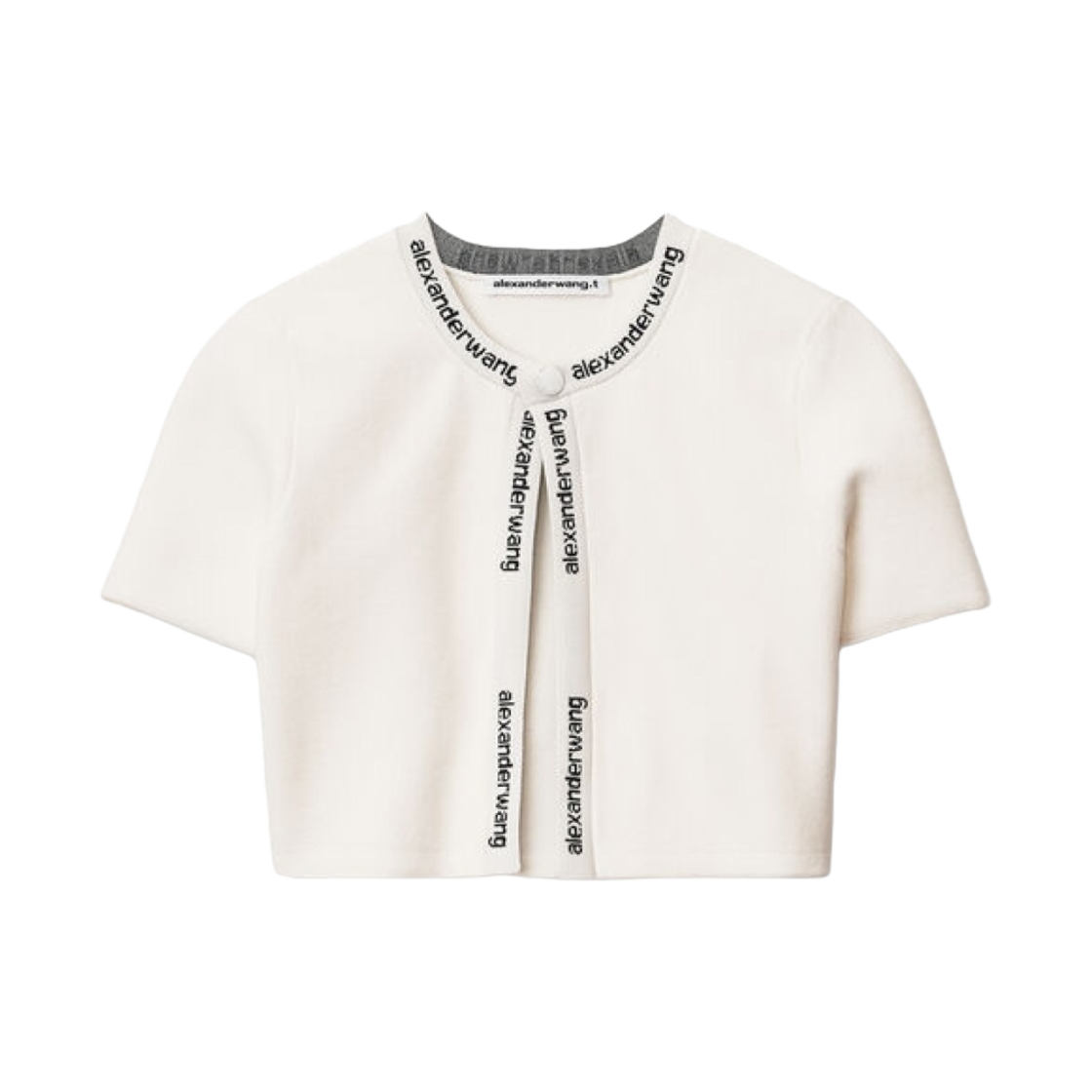 (W) 알렉산더 왕 스트레치 니트 자카드 숏슬리브 로고 가디건 화이트