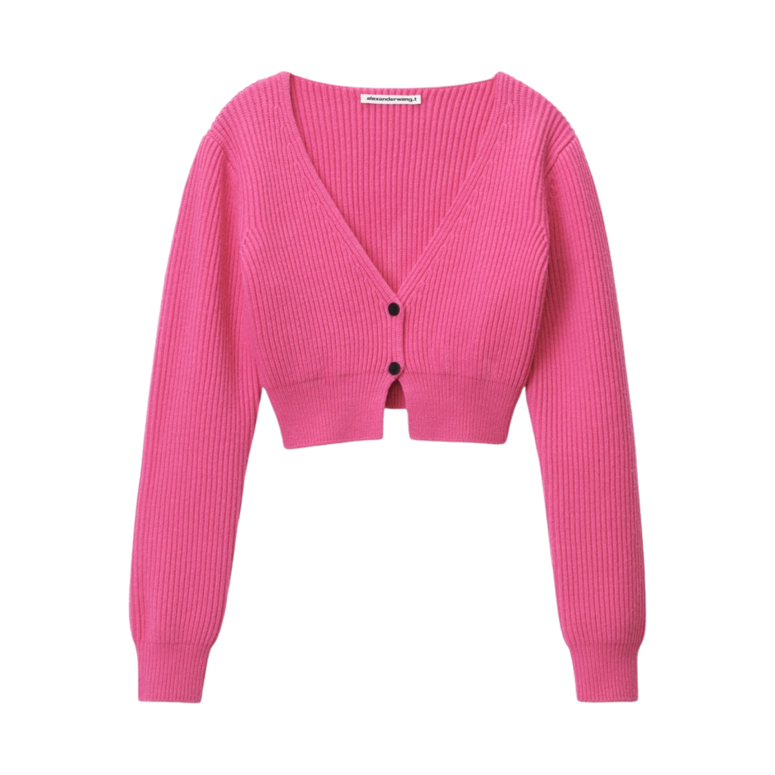 (W) 알렉산더 왕 립드 울 브이넥 크롭 가디건 핫 핑크