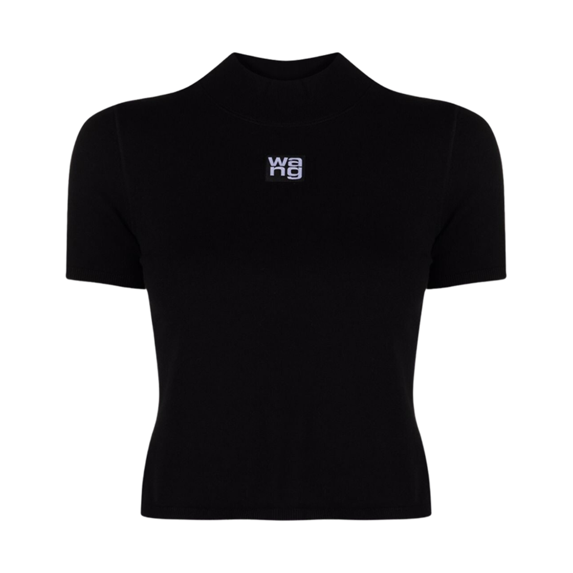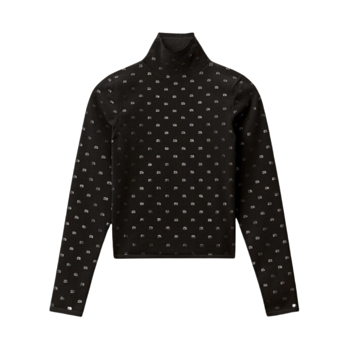 (W) 알렉산더 왕 스트레치 나일론 크리스탈 로고 터틀넥 블랙