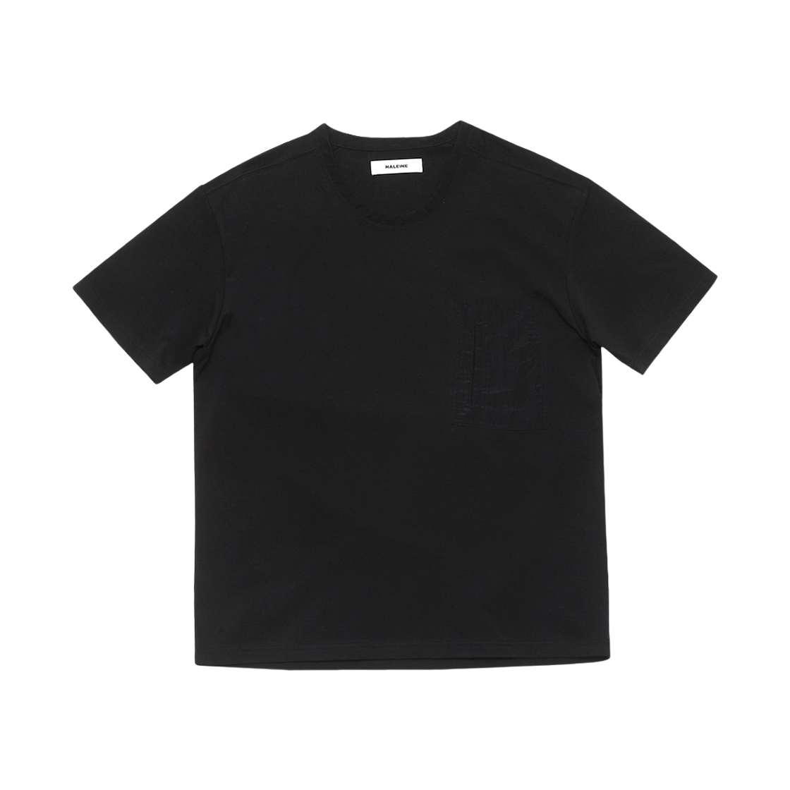 알렌느 믹스드 패브릭 유넥 티셔츠 블랙