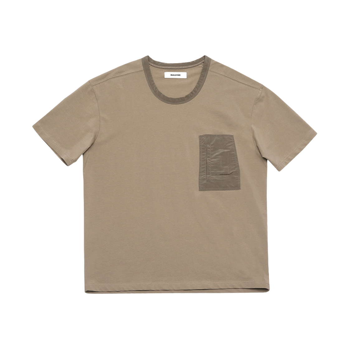 알렌느 믹스드 패브릭 유넥 티셔츠 탄