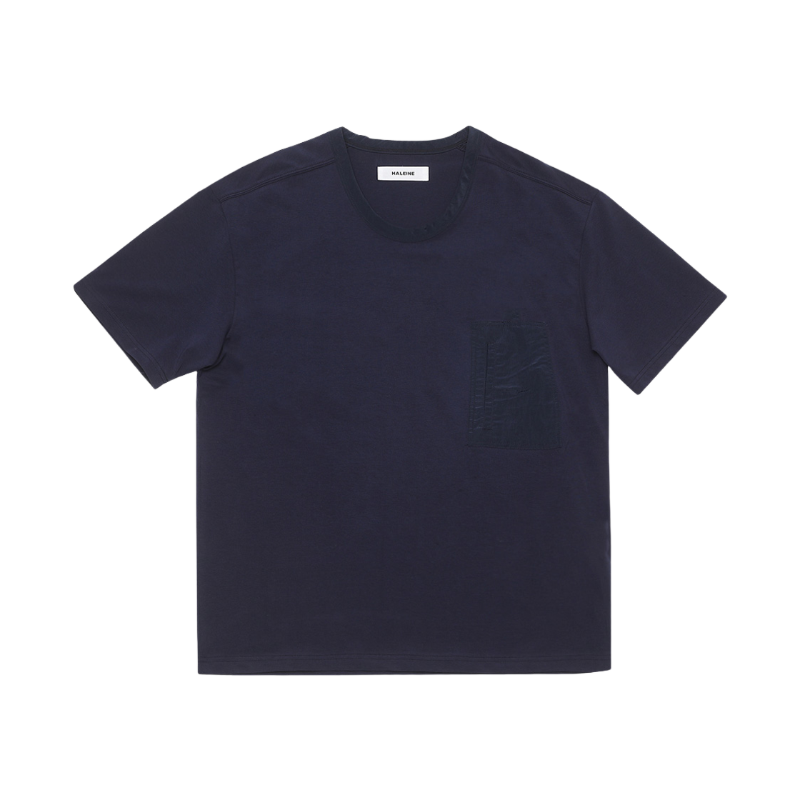 알렌느 믹스드 패브릭 유넥 티셔츠 네이비