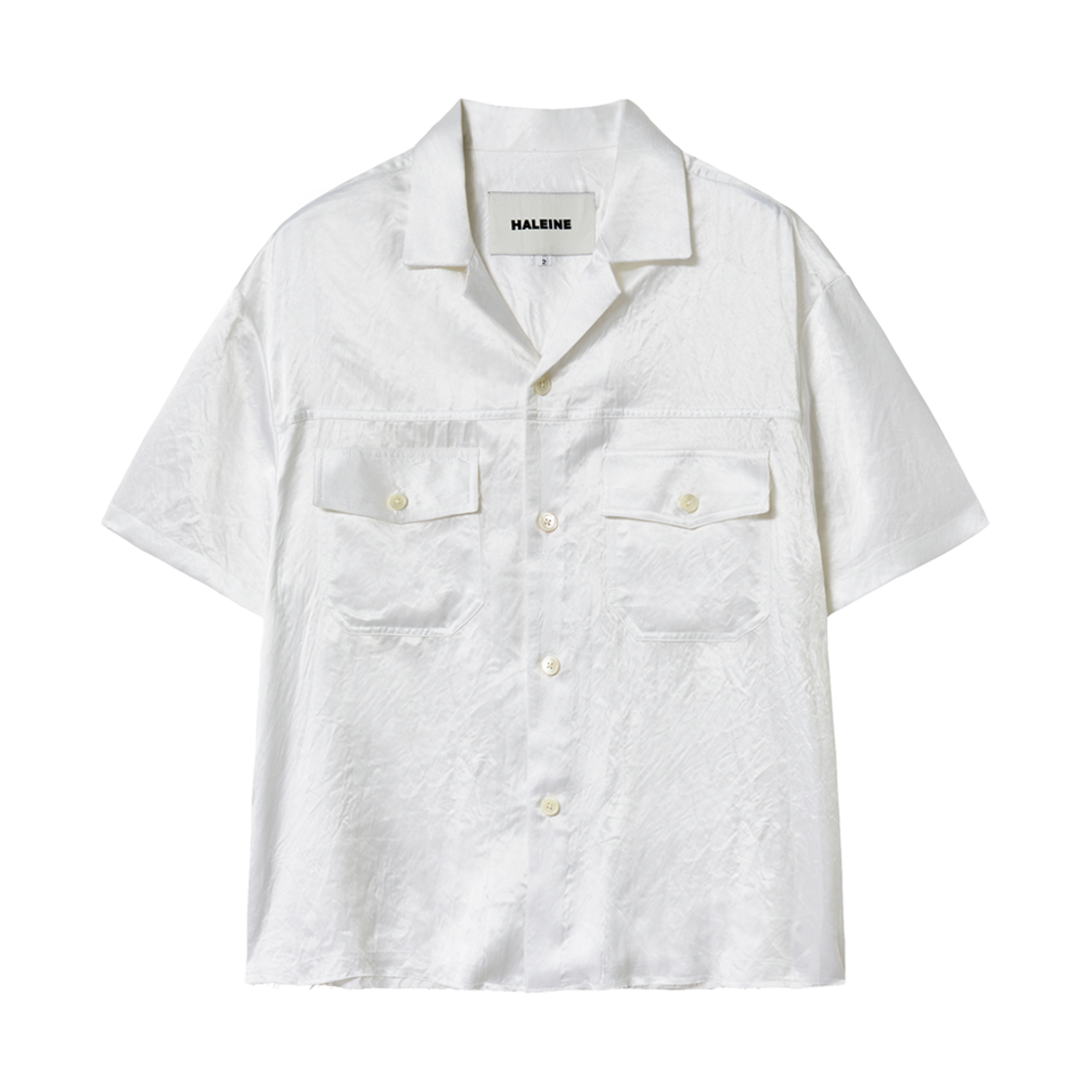 알렌느 오픈 칼라 크링클드 새틴 셔츠 화이트