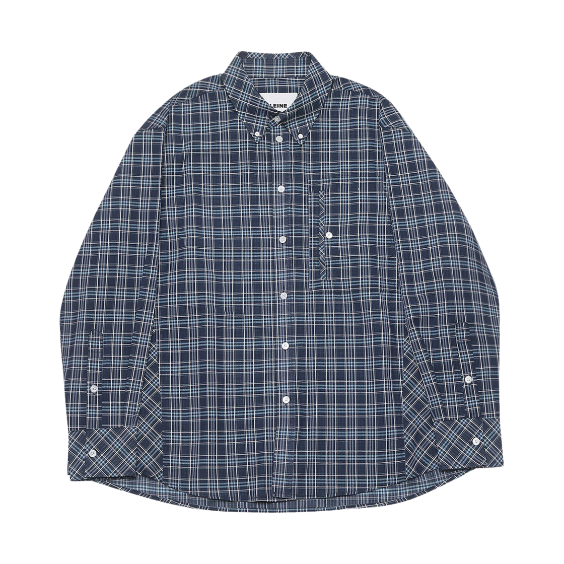 알렌느 인시전 체크 후디드 셔츠 네이비