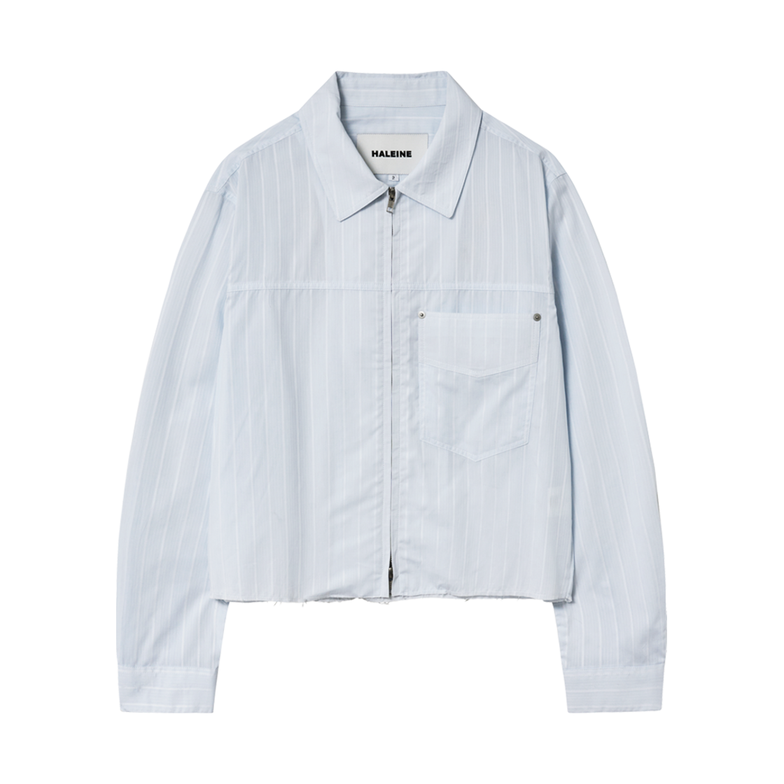 알렌느 쉬어 집업 크롭 셔츠 블루
