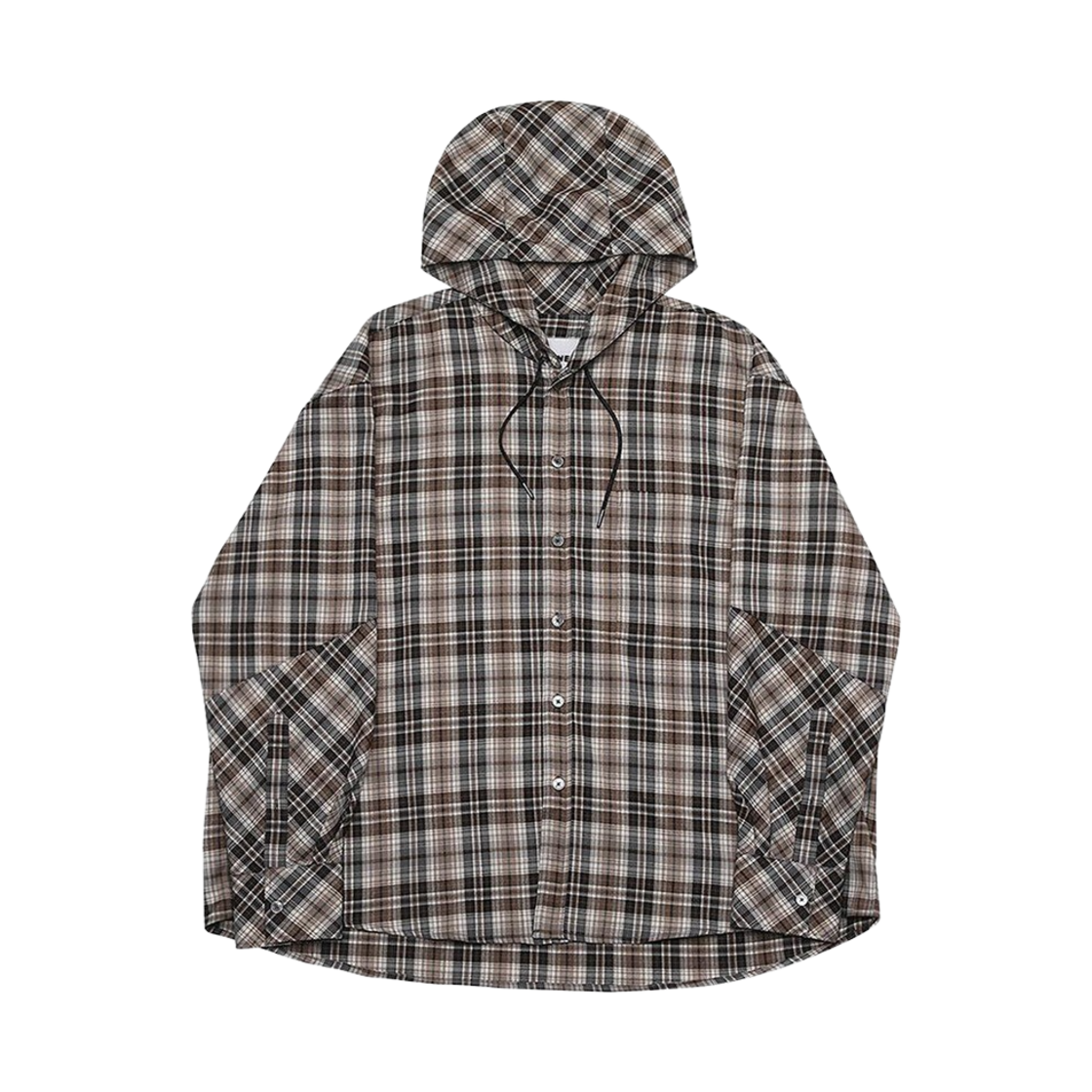 알렌느 인시전 체크 후디드 셔츠 브라운