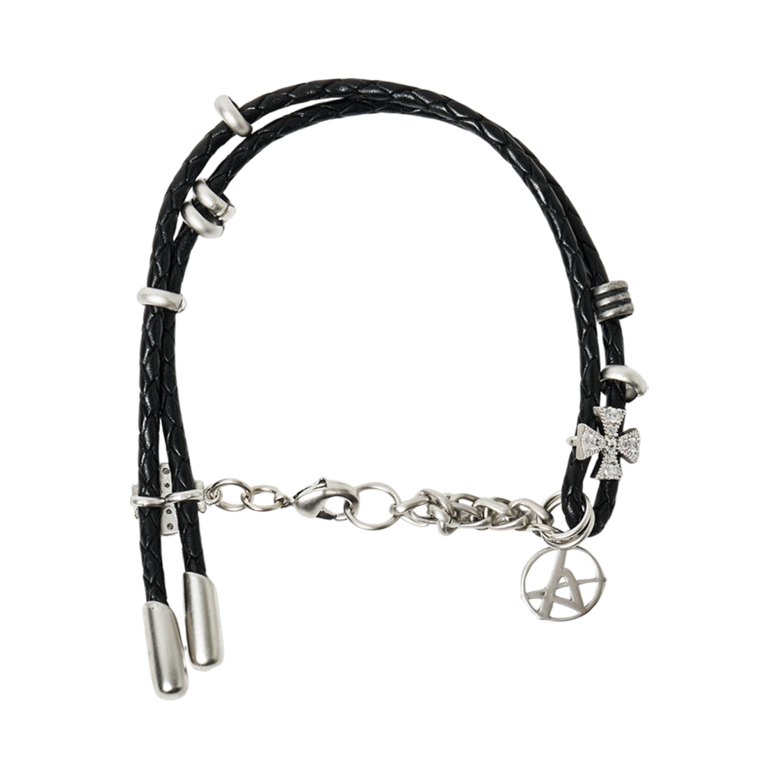 알렌느 크로스 주얼리 레더 브레이슬릿 블랙