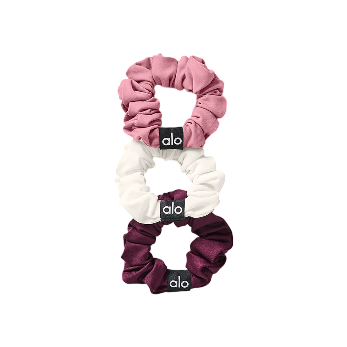(W) 알로 요가 프레쉬 미니 스크런치 버건디 핑크 와일드 로즈 아이보리 (3개입)