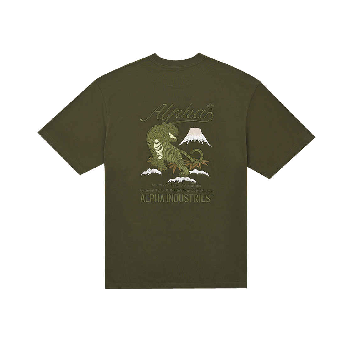 알파 인더스트리 타이거 서치 앤 디스트로이 티셔츠 올리브