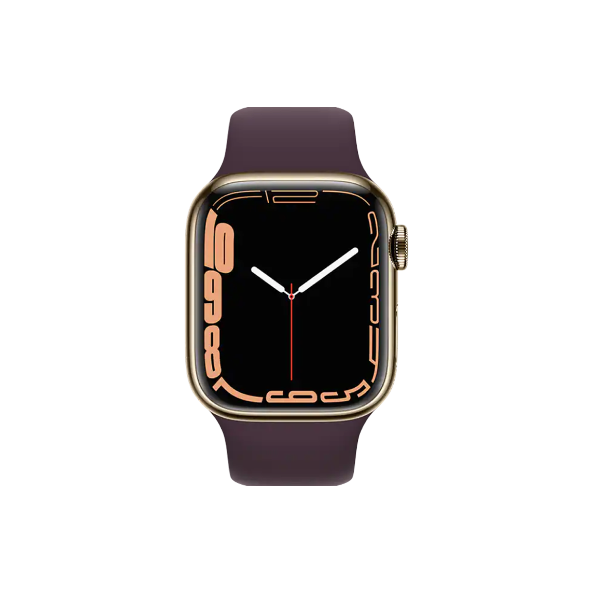 [B등급] 리퍼비시 애플워치 7 41mm 셀룰러 골드 스테인리스 스틸 케이스 스포츠 밴드 다크 체리