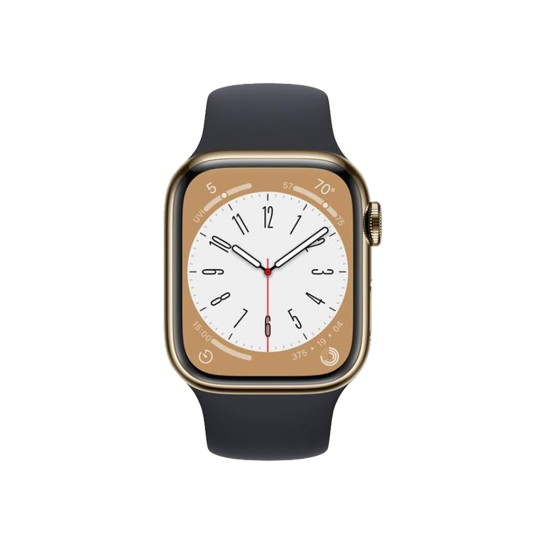 [S등급] 리퍼비시 애플워치 8 45mm 셀룰러 골드 스테인리스 스틸 케이스 스포츠 밴드 미드나이트