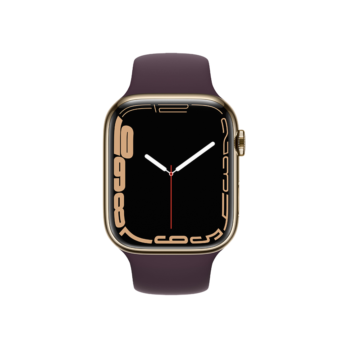[B등급] 리퍼비시 애플워치 7 45mm 셀룰러 골드 스테인리스 스틸 케이스 스포츠 밴드 다크체리