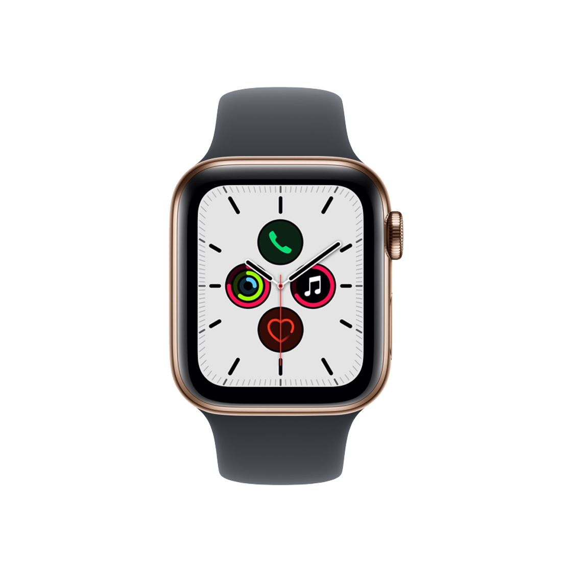 [S등급] 리퍼비시 애플워치 5 44mm 셀룰러 골드 스테인리스 스틸 케이스 스포츠 밴드 미드나이트