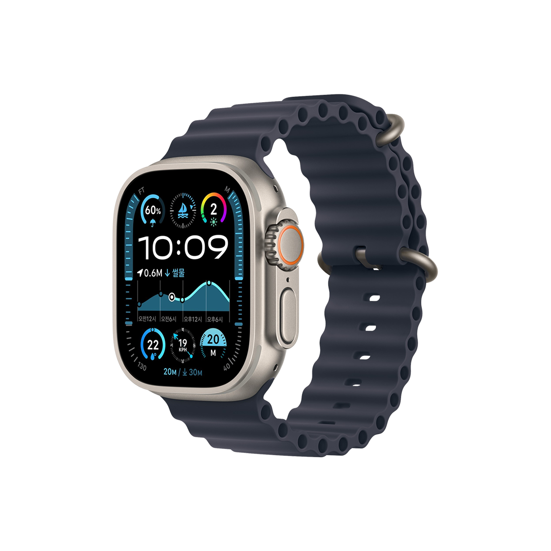 애플 워치 울트라 2 49mm GPS 셀룰러 내추럴 티타늄 케이스 오션 밴드 네이비 (국내 정식 발매 제품)