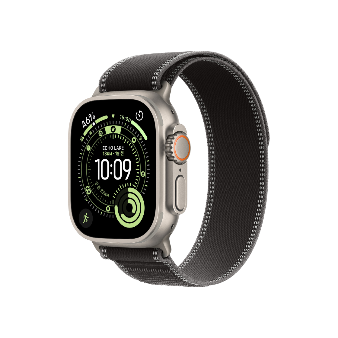 애플 워치 울트라 3 49mm 내츄럴 티타늄 케이스 M/L 트레일 루프 블랙 차콜 (국내 정식 발매 제품)