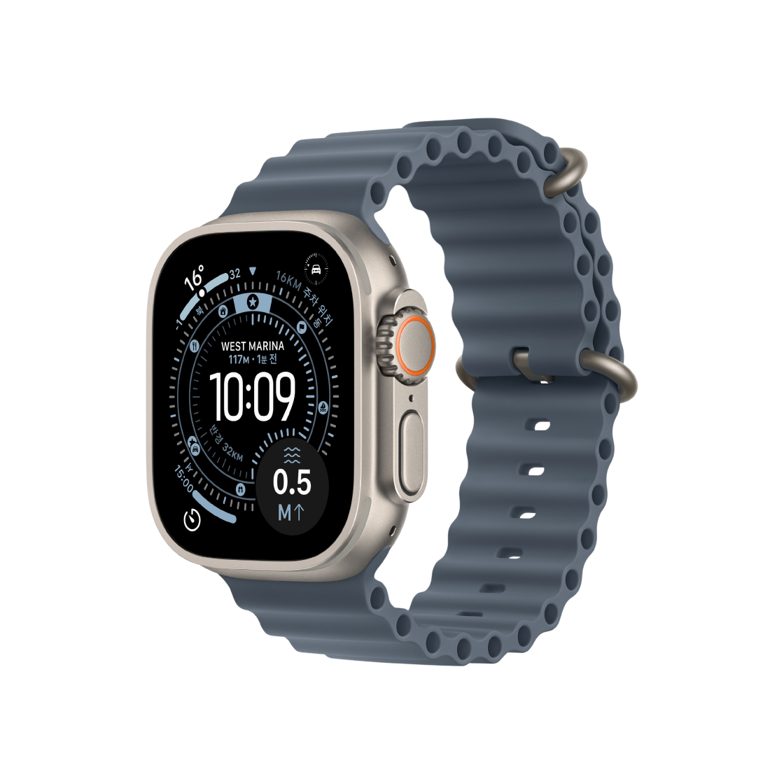 애플 워치 울트라 3 49mm 내츄럴 티타늄 케이스 오션 밴드 앵커 블루 (국내 정식 발매 제품)
