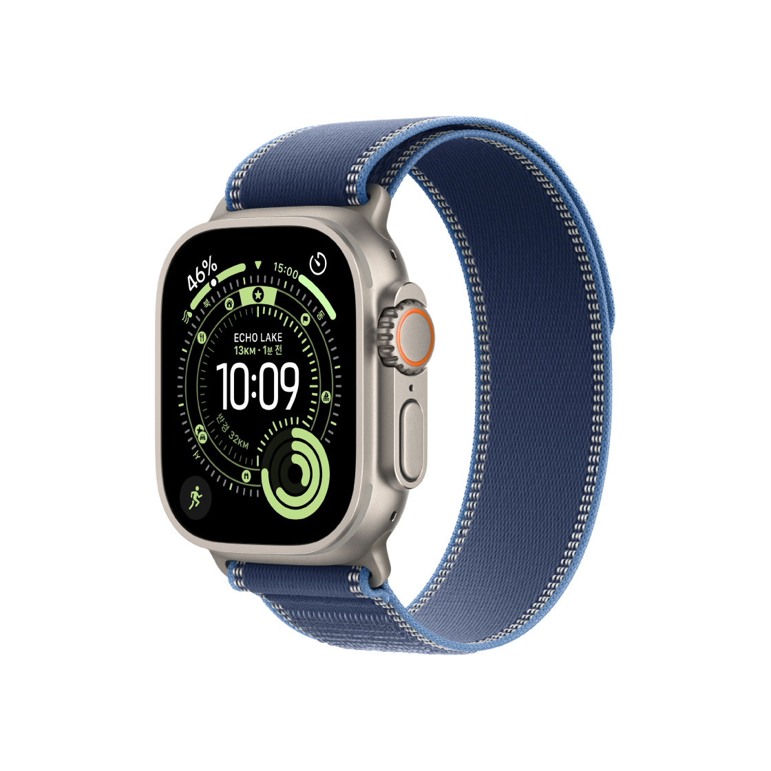 애플 워치 울트라 3 49mm 내츄럴 티타늄 케이스 M/L 트레일 루프 블루 브라이트 블루 (국내 정식 발매 제품)