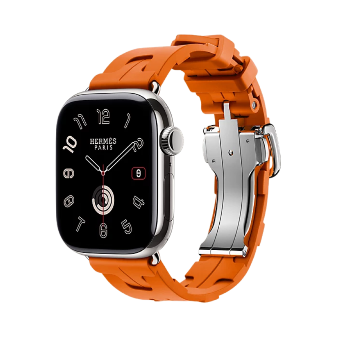 애플 워치 10 에르메스 42mm 티타늄 케이스 러버 싱글 투어 디플로이먼트 버클 오랑쥬 (국내 정식 발매 상품)