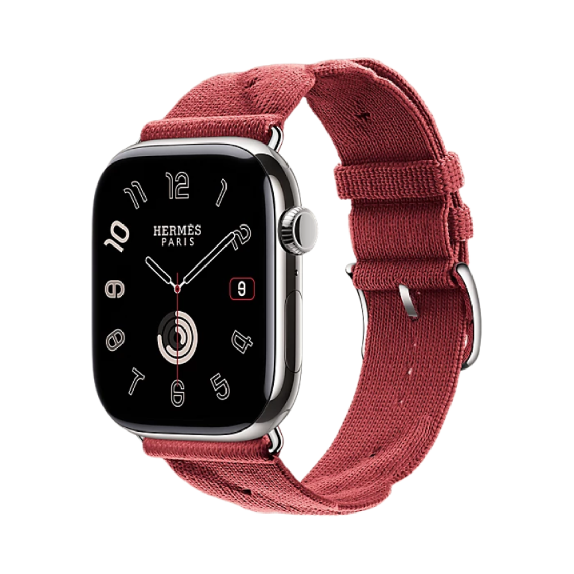 애플 워치 10 에르메스 46mm 티타늄 케이스 니트 나일론 토르사드 싱글 투어 루즈 그르나 (국내 정식 발매 상품)