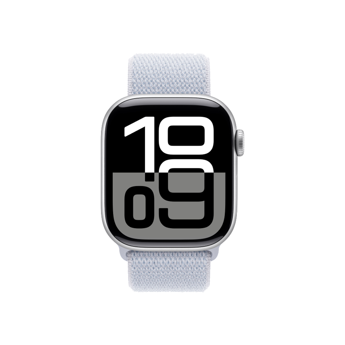 [S등급] 리퍼비시 애플워치 10 42mm GPS 실버 알루미늄 케이스 스포츠 루프 블루 클라우드