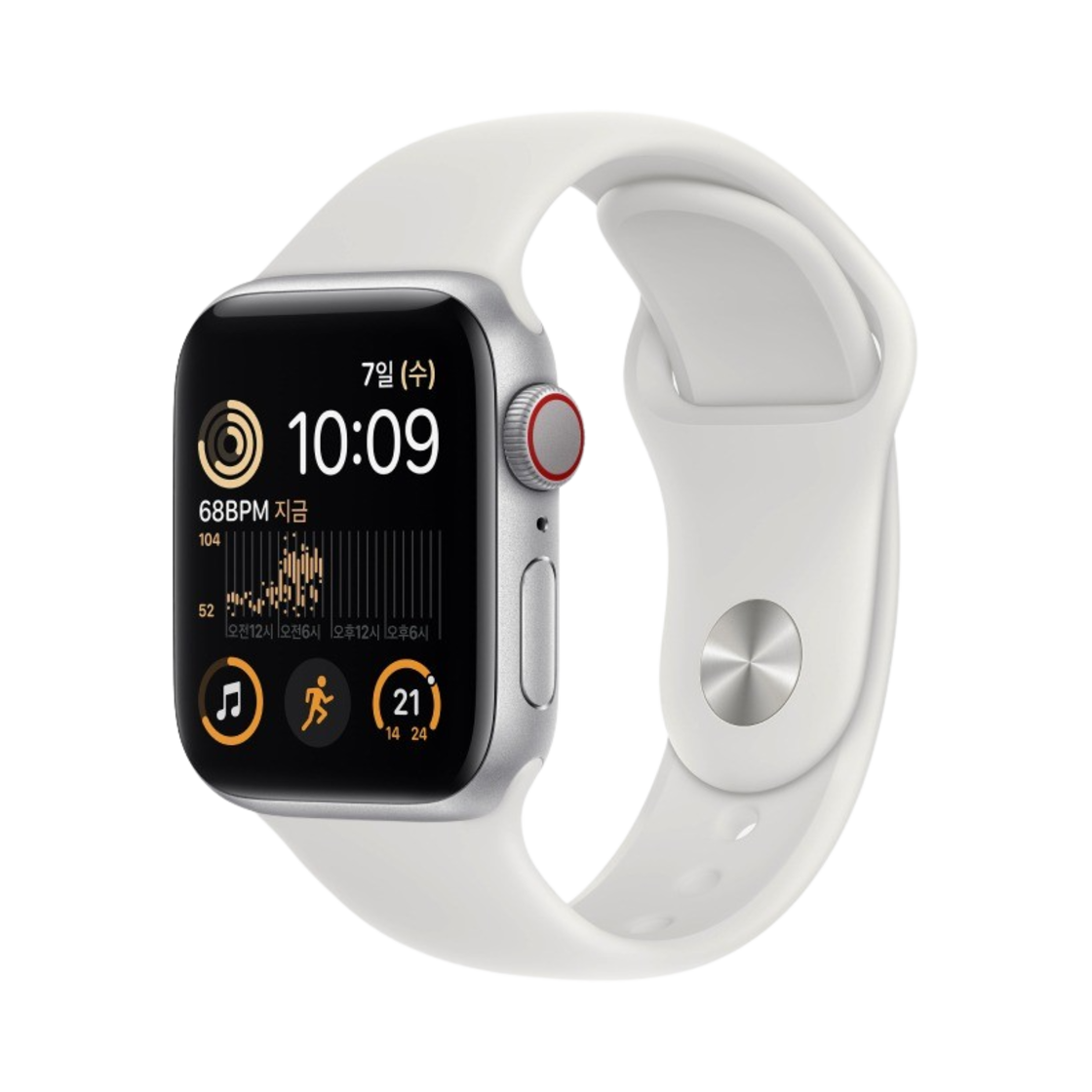 애플 워치 SE 40mm 셀룰러 실버 알루미늄 케이스 스포츠 밴드 화이트 (국내 정식 발매 제품)