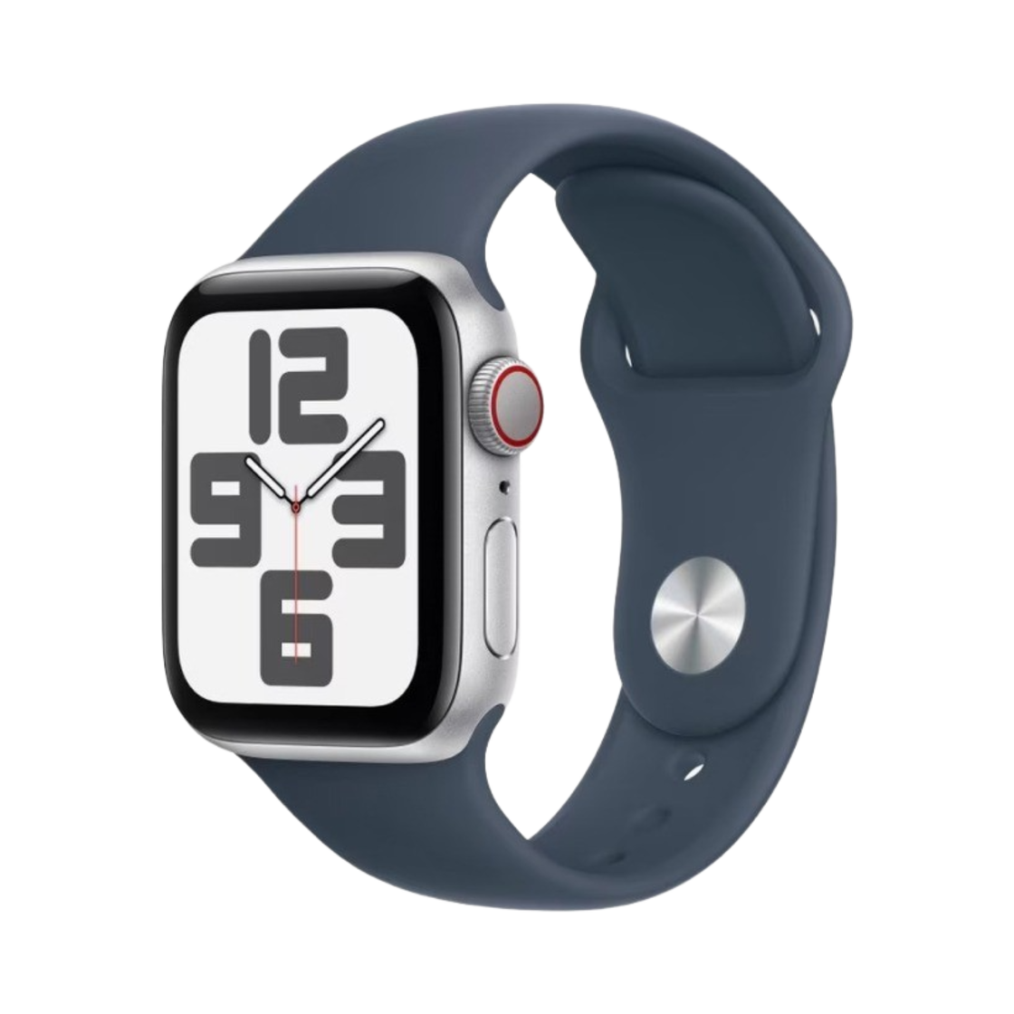 애플 워치 SE 2023 40mm 셀룰러 실버 알루미늄 케이스 스포츠 밴드 S/M 스톰 블루 (국내 정식 발매 제품)
