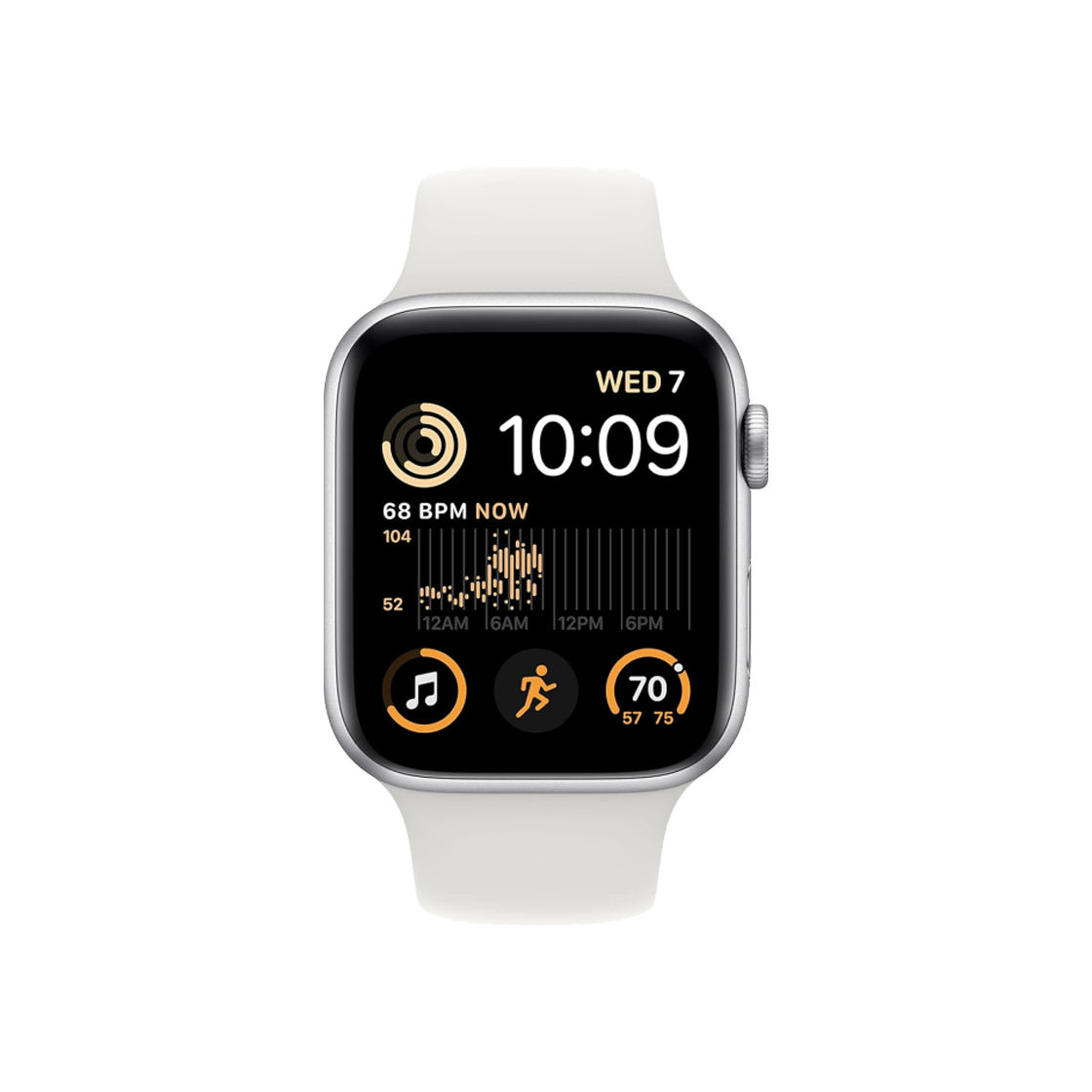 애플 워치 SE 44mm GPS 실버 알루미늄 케이스 스포츠 밴드 화이트 (국내 정식 발매 제품)