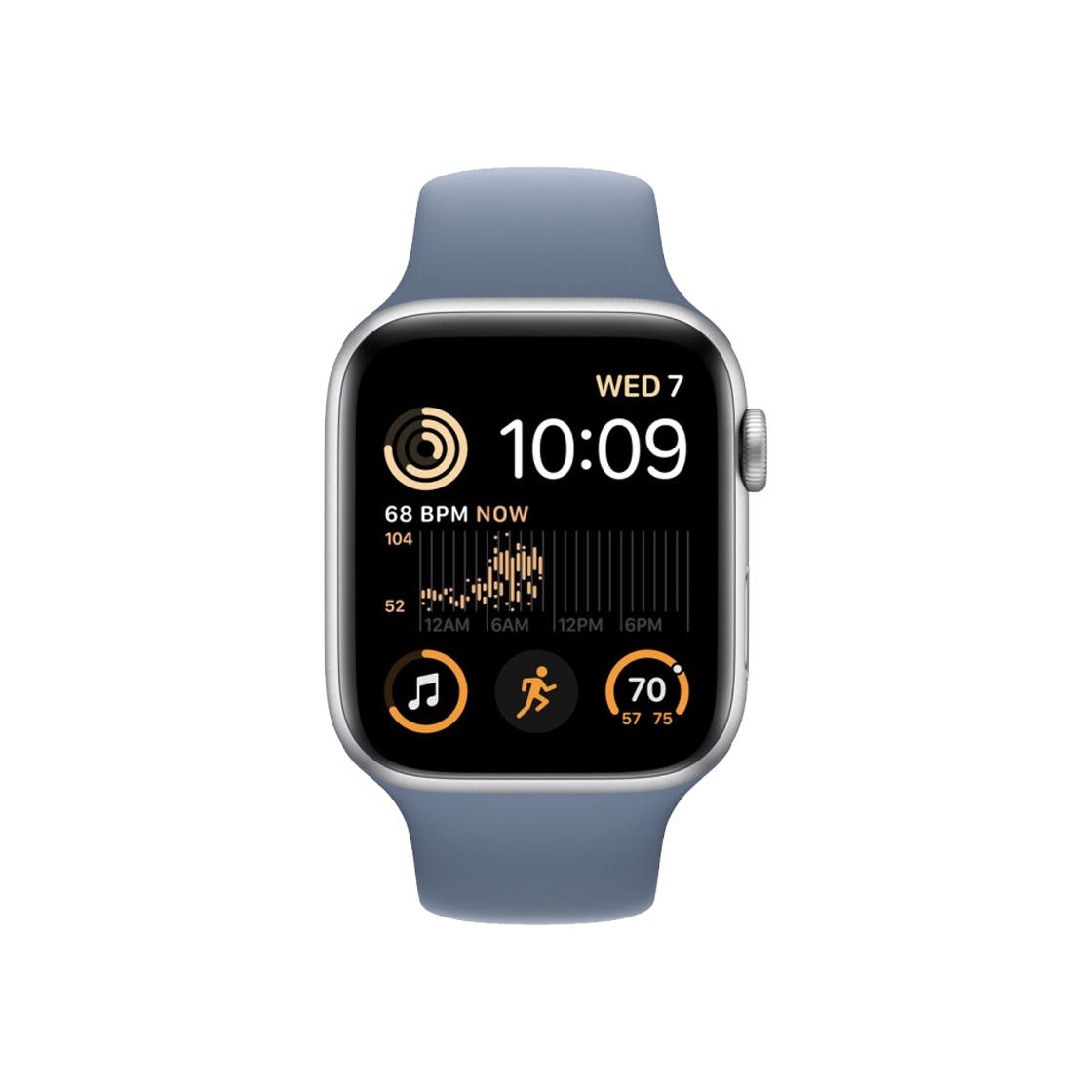 애플 워치 SE 2023 44mm GPS 실버 알루미늄 케이스 스포츠 밴드 M/L 스톰 블루 (국내 정식 발매 제품)
