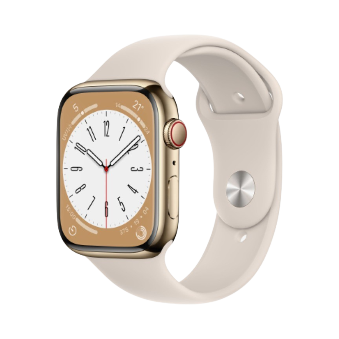 애플 워치 8 45mm 셀룰러 골드 스테인리스 스틸 케이스 스포츠 밴드 스타라이트 (국내 정식 발매 제품)