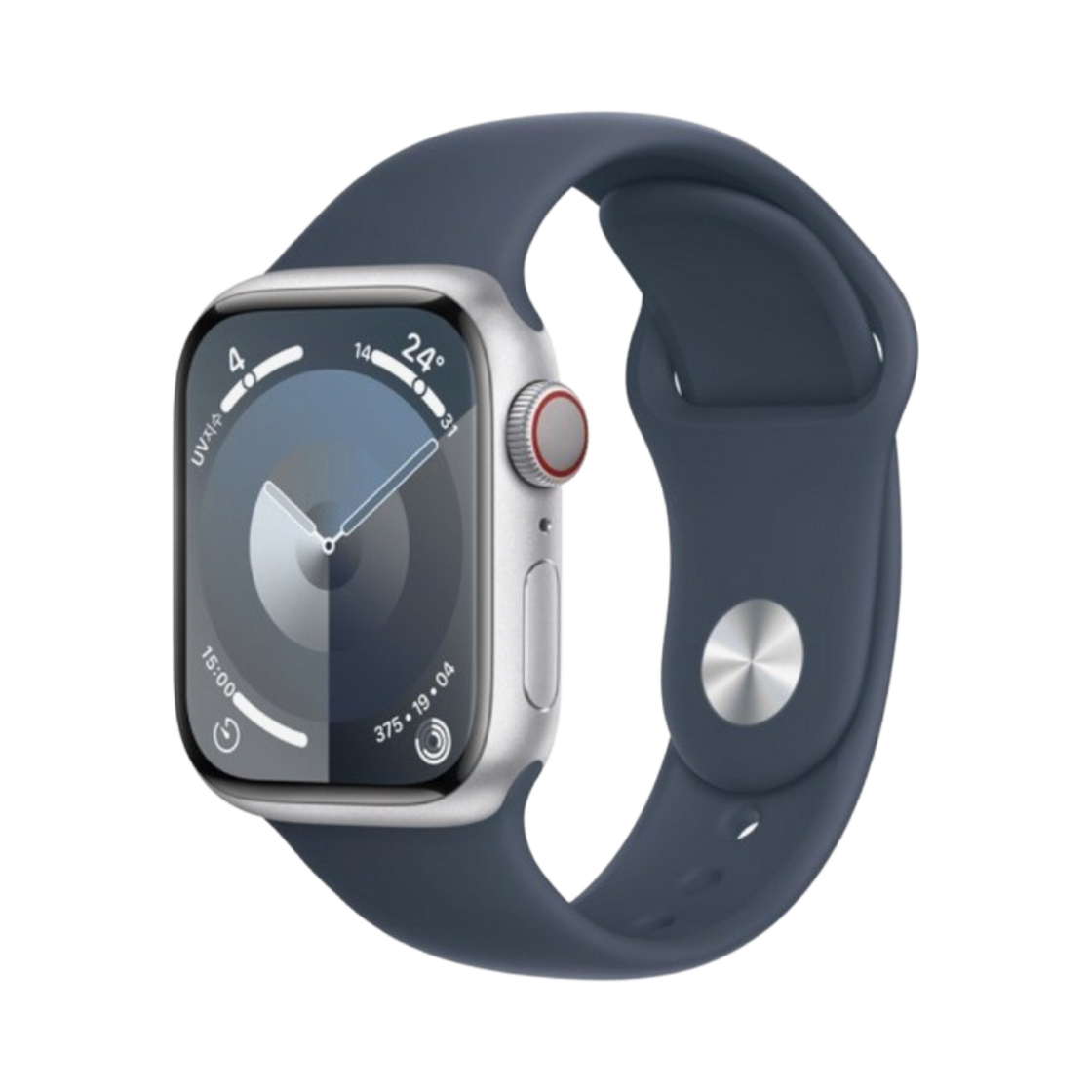 애플 워치 9 41mm 셀룰러 실버 알루미늄 케이스 스포츠 밴드 M/L 스톰 블루 (국내 정식 발매 제품)